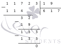 Al expandirnos conseguimos que 2, 3, 5, 7, 11, 13, 17, 19, 23, 29, 31, 37, 41, 43, 47, 53, 59, 61, 67, 71, 73, 79, 83, 89, 97, 101, 103, 107… todos estos son números primos. Todo este proceso se puede representar como una división por una columna. Es decir, dividir 11723 en 19. Número 19 es uno de sus factores, ya que obtenemos la división sin resto. Representemos la división como una columna: