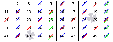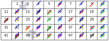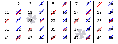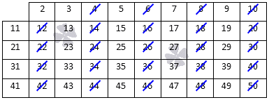 El método que utiliza el tamiz de Eratóstenes se considera el más conveniente. Veamos las tablas siguientes como ejemplo. Primero, escribe los números.2, 3, 4, …, 50.