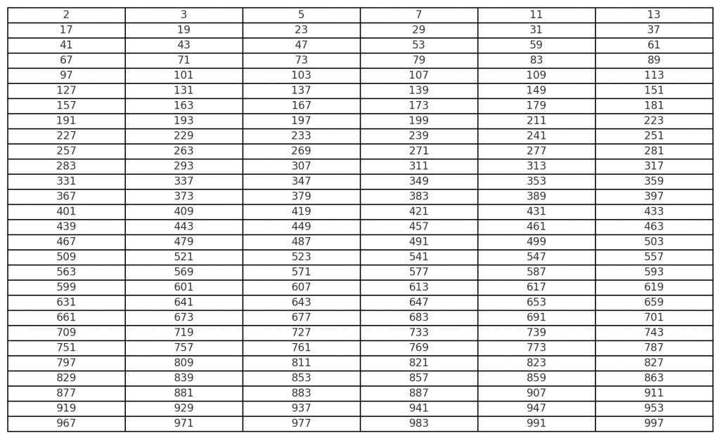 Para facilitar el uso de números primos, es necesario utilizar una tabla:
